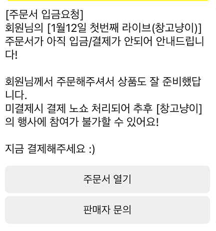 자극하는 구매알림 메시지를 보내요